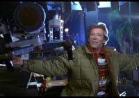 The Stunt Man1980. Written and directed by Richard Rush. With Peter O'Toole, Steve Railsback, Barbara Hershey, Allen Goorwitz. A young fugitive with an already-fluid identity hooks up with a movie company shooting an anti-war epic and gets sucked into a weird truth-or- illusion game. He thinks he has inadvertently caused the death of the leading man's stunt double, and he agrees to the director's proposal that he not only replace the dead man but impersonate him. This lets the production avoid a costly interruption, and provides a great way for the kid to evade the law. "You've heard of movie magic," coos the direction. "You shall be a stunt man, who is an actor, who is a character in a movie, who is an enemy soldier. Who'll look for you amongst all those?" Immediately the kid is renamed ("Lucky"), dressed up, and thrust into dangerous situations that might or might not be staged. Are those blanks or real bullets flying around? Is the director setting him up to be murdered? Does the leading lady really love him, or is she playing? Is the original stunt man really dead? Is Lucky pretending to fight World War I or is he back in Vietnam? Is the flamboyant director (named "Ira Cross" and continually flying aloft on a dolly) actually a dark angel, the kid's "fate" or some other symbolic creature? The Stunt Man glories in ambiguity (it won critical praise for doing so), but it works in a strange and ultimately annoying way. Time and again we're thrust into the middle of scenes of mayhem without knowing if they are part of Cross's WWI script or if events have spun terribly out of control. It's seldom clear to which camera--Cross's or Richard Rush's--the performers are addressing themselves. For example, during one of the early war scenes in which Lucky participates, another soldier slams a rifle butt in his face and opens up a deep gash in his cheek. Stunned, frightened and angry, Lucky looks around wildly and begins to truly fight for his life. Has this "movie" turned into a free-for-all, we ask ourselves? Is it a cover for some sort of murder plot? Then suddenly the other soldiers are grinning and patting Lucky on the back. The shot has been a success. His stunt mentor comes up and peels the wound off his face. Now, the joke here is obviously on the audience alone, since Lucky had to know that he'd spent time getting made up, that his face didn't really hurt, and that everything was proceeding as planned. Why then that reaction of confusion and fear? (Great acting? I don't think so...) And why were we shown the attack on Lucky as a continuous sequence, when in actual fact the cameras would have stopped, the makeup person would have rushed in and applied the "wound," and a new shot would have begun? Another time, a bunch of tourists are gathered out of camera range to watch Cross shoot a scene of soldiers storming a beach. Cameras rolling... Cue the soldiers... Explosions, gunfire, smoke. Abruptly the spectators' grins turn to looks of horror. They begin to scream and point. Men are lying on the beach horribly maimed. Blood and severed limbs are everywhere. Oh God, there's a real attack going on! The bystanders turn to flee. No...wait. Those mangled men stand up and brush themselves off. The one whose legs have been shot off pushes that prosthetic mass of flesh off his lap and pulls his (intact) lower body out of the sand. The crowd shakes their heads in relief, impressed once again with the magic of movies. Trompe-l'oeil, as the video box says. But look: it's impossible. Sequences like that aren't filmed in real time. Are we supposed to believe that the actors managed to half-bury themselves in the sand, rip their uniforms, drench themselves in stage blood, and arrange prop body parts all around under cover of a couple of brief puffs of smoke? The Stunt Man keeps us confused about what's real and what's cinema by misrepresenting the logistics of filmmaking. Other movies about movies do the same thing--it's not unusual to see a sequence composed of dozens of different shots unroll between "Action!" and "Cut!"--and usually it's an excusable expedient. But The Stunt Man's entire MO is to make us wonder which fictions belong to the inner movie and which belong to the outer movie, which means that it achieves its central effects by cheating. I think that this was not noticed when the film came out because The Stunt Man is shot and edited in that non-sequential style that looked so hip and European in the late 70s. There are many short, fragmentary scenes that seem to have no logical or temporal connection to each other. Like Lucky, we feel stoned, stupid and paranoid. Talk about the pathetic fallacy! Some failures of continuity may be a case of turning necessity into a virtue, since The Stunt Man had a long and tangled production history and was probably significantly reconstructed in the editing room. But here what makes me suspicious: There's a sequence early on where the stunt director is showing Lucky how to take a fall. The guy does a simple shoulder roll on a mat, and then Lucky tries one. In each case, there are a couple of cuts in the middle of the roll! A straightforward, 3-second piece of action turned into hash! What, couldn't the actors manage their own somersaults? Did they have to resort to stunt work within stunt work? I guess if I respected the filmmaker more, I would call this self-referentiality, but it only seems sloppy. The movie badly needs some foundation of honest actions and real spatial relationships against which to set its many ambiguities and conundrums. Hmmm, I can hear myself sounding like scold here. The Stunt Man was highly praised when it came out as a challenging, elliptical piece of filmmaking. It certainly plays with many of the intriguing paradoxes of movies as recorders of both true and false events. Maybe somebody out there who liked it better than I did can put it in a more positive light for us. (3/14/1996) |